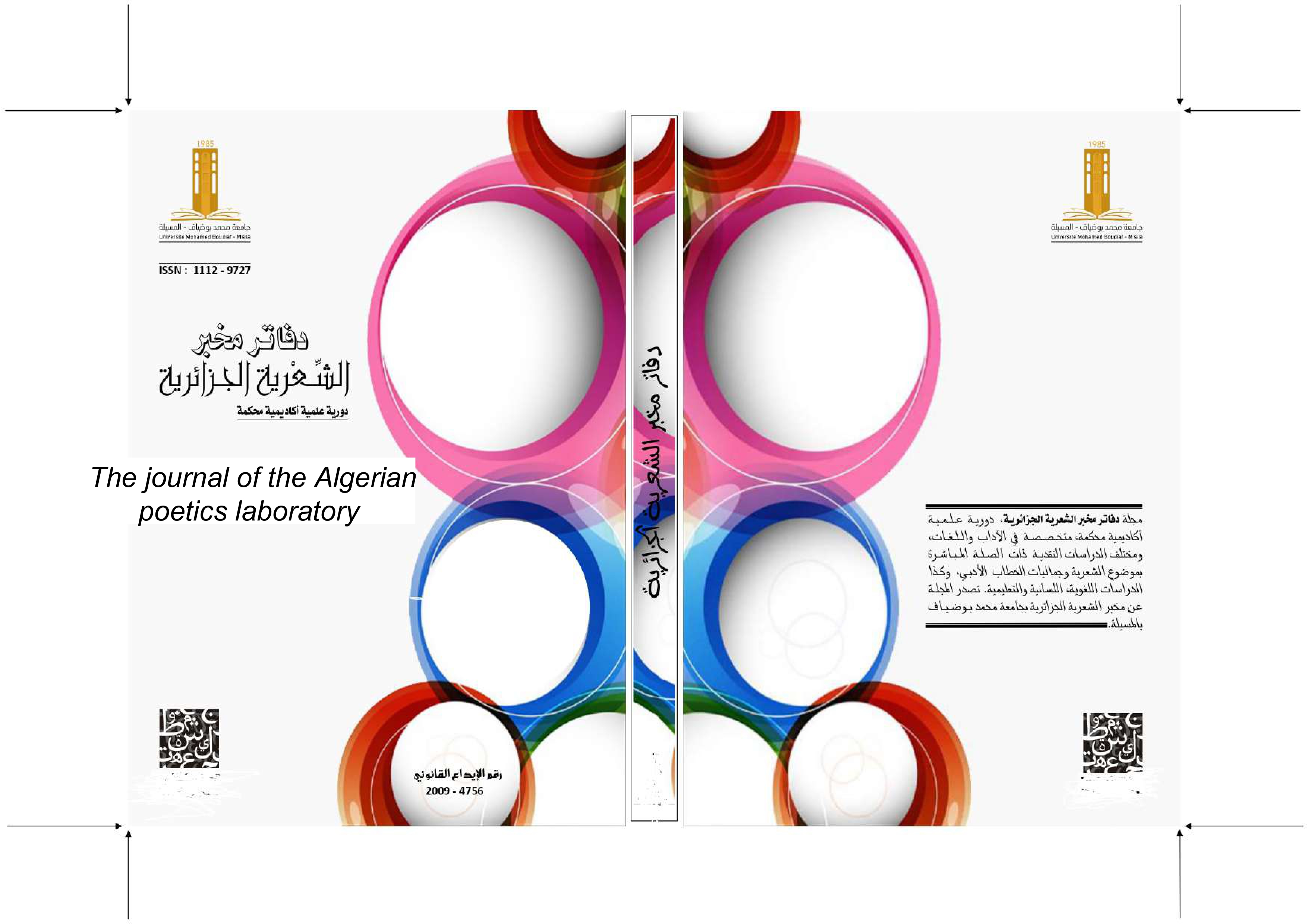 The Journal of the Algerian Poetics Laboratory (JAPL) is an academic journal with a reading committe, specialized in literature, linguistics and various critical studies directly related to the poetry and aesthetics of literary discourse, as well as didactic studies. The journal It is published in Arabic and other living foreign languages, especially English; it is published by the Laboratory of Algerian Poetics of Mohamed Boudiaf University of M'Sila.