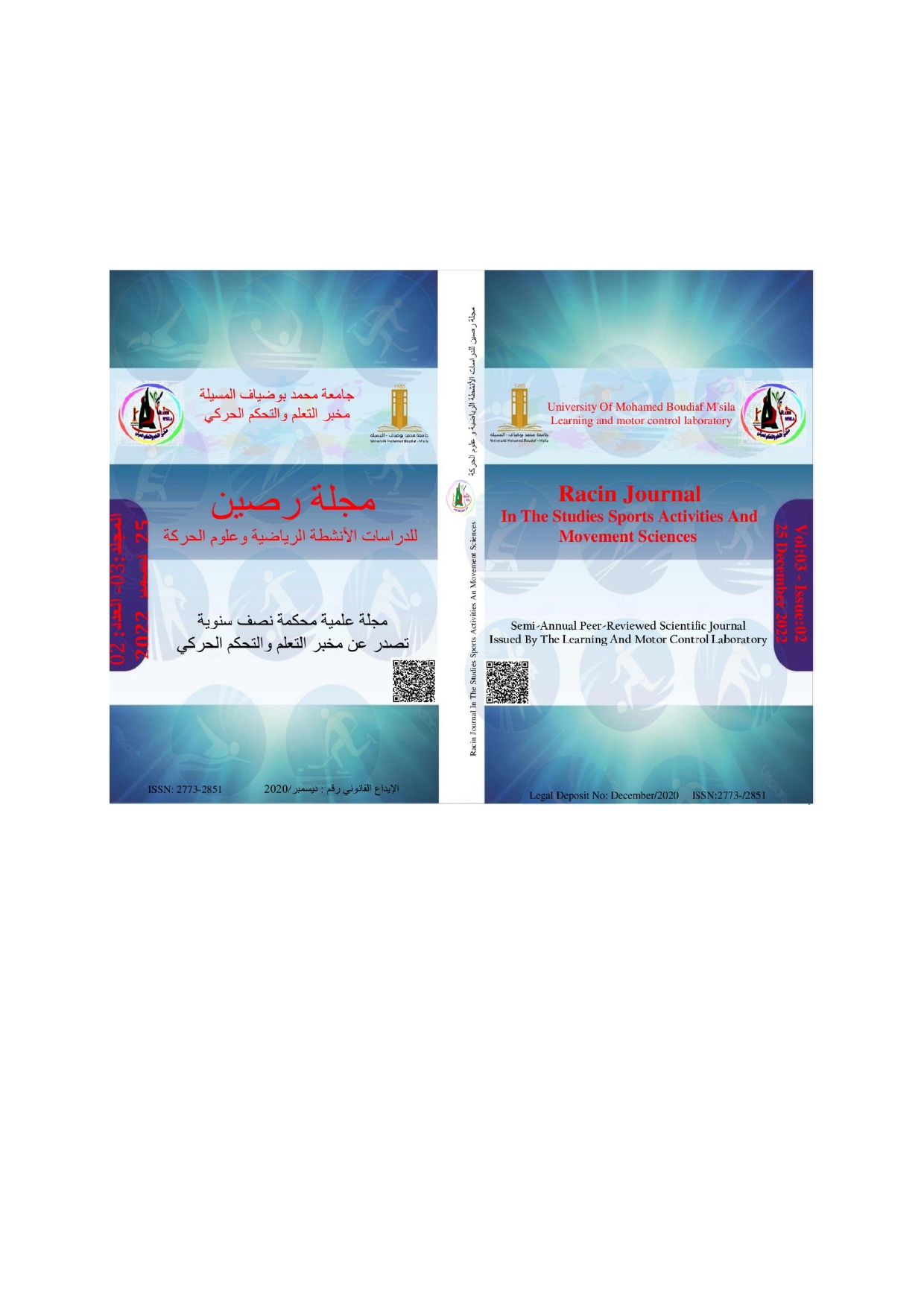 The Rasin Journal for Sports Activities and Movement Sciences is a semi-annual international scientific journal dedicated to publishing cutting-edge research and studies related to various topics and fields within the sciences and technologies of physical activities, sports, and movement sciences (psychological, educational, and social sciences; biomechanics; biological and medical sciences, etc.). The journal publishes innovative research in one of the aforementioned fields in Arabic with an abstract in English or French. Alternatively, the journal may publish research in either English or French with an Arabic abstract. The journal welcomes submissions from all researchers, professors, and graduate students, both within the country and abroad, who wish to publish their scientific work and research.