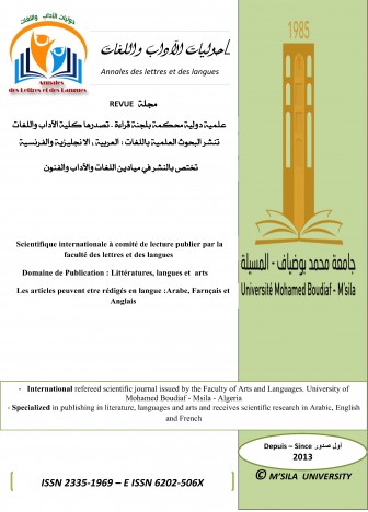 وصف المجلة تأسست المجلة سنة 2013 وهي علمية دولية محكمة ذات لجنة قراءة ولجنة علمية استشارية دولية، تتشكل من أساتذة من جامعات جزائرية تونسية ومغربية ويمنية وقطرية وسعودية ومن جامعات الأردن والسودان وقطر وبلجيكا وهي تسعى للتوسع إلى جامعات أجنبية إضافية حتى يتمكن فريق التحرير من تحقيق صفة الدولية فيها فعليا من خلال توسيع انتشارها العلمي والجغرافي. 1- الناشرEditeur-Publisher- : تصدر المجلة عن كلية الآداب واللغات بجامعة محمد بوضياف بالمسيلة ،الجزائر. وهذه الصفة تؤهل الجامعة لاكتساب حقوق النشر مع احترام حقوق المؤلف والحقوق المجاورة 2- الصدور Periodicity - Périodicité: المجلة نصف سنوية تصدر عددين في السنة خلال شهر نوفمبرNovembre و شهر أفريل Avril وعند الضرورة تصدر عددين إضافين خاصين في موضوع أو مناسبة علمية . 3- المجالات العلمية Domaines scientique: تختص المجلة بالنشر في مجالات الآداب المحلية والعالمية واللغات ،وتعتمد على اللغات العربية والانجليزية و الفرنسية في تخصصات الآداب واللغات والفنون. 5- الجمهورPublique تسعى المجلة إلى تحقيق الاحترافية العلمية بتوجيه النشر إلى جمهور الباحثين من أساتذة الجامعات من داخل وخارج الوطن وهدفها من ذلك خدمة البحث العلمي الجاد وفقط. 6- أصالة البحوثOriginality : يجب أن يكون البحث العلمي أصيلا جادا وموضوعيا ،متطابقا مع شروط البحث العلمي من حيث احترام المنهجية العلمية المتعارف عليها سواء من حيث الشكل أو الموضوع المبادي, وتتجلى الأصالة في العناصر التالية 1. بحث قديم بتفسير جديد، لفكرة أو ممارسة معروفة مسبقاً، وتكون مساهمتك إعادة طرحها من زاوية اخرى. 2. تقديم أدلة جديدة لتأكيد أو نفي قضية قديمة أو مشكلة نوقشت من قبل 3. ابتكار فكرة جديدة وعرضها بشكل معبر ولم تسبق إلى ذلك 4. تنفيذ فكرة بحث طبقت في دولة وبيئة معينة، وتطبقها في بيئة جديدة للخروج بنتائج جديدة 5. تطبيق تقنية كانت مستخدمة في مجال، وتطبيقها في مجال جديد لم تسبق إليه. 6. عمل بحث لاستكشاف قضايا معروفة لكن باستخدام منهجية جديدة 7. تقديم معرفة جديدة أو نظرية جديدة لم تقدم من قبل. 7- احترام الغير في ثقافته وهويته وشخصيته : تمتنع المجلة عن نشر كل عمل ترى فيه اعتداء على حقوق الغير كما هو متعارف عليه ضمن مبادىء حقوق الإنسان لأن هدفها خدمة العلم والبحث العلمي فقط. Journal Description Annals of Letters and Languages The "Annals of Letters and Languages" is an international and a scientific Journal that was founded in 2013. And it is reviewed by a reading committee and an international scientific advisory committee, consisting of professors from different universities such as "Algeria, Tunisia, Morocco, Yemen, Qatar Saudi, Jordan. Sudan, Qatar and Belgium". It seeks for an expansion to additional foreign universities so that the editorial team can effectively achieve its international, scientific, and geographical status 1. Publisher The Journal is published by the Faculty of Arts and Languages at The University of Mohamed Boudiaf- M'sila, Algeria. This feature qualifies the university to acquire copyright with respect to copyright and related rights. 2. Periodicity: The Journal is a half-yearly issued; it publishes two issues per year during November and April. Two additional issues will be issued in special scientific event or topics, if necessary, . 3. Scientific Fields Local and international literature and languages are the main fields the Journal is specialized in publishing, through Arabic, English and French languages in the disciplines of literature, languages and arts. 4. Public (Audience) The Journal aims at achieving a scientific professionalism through directing publication to the researchers from inside and outside the country and serving only the serious and scientific research. 5. Originality Scientific research must be genuine, serious, objective, and mutch the requirements of the scientific research in terms of respect to the accepted scientific methodology as to form and subject matter. Originality is reflected in the following elements: 1. An old search with a new interpretation, a pre-known idea or practice, and your contribution is to re-introduce it from another angle; 2. Provides new evidence to confirm or deny an old case or problem that is discussed before; 3. Creates a new idea and present it in an expressive way that has never been before; 4. Implementation of a research idea applied in a particular country and environment, and apply it in a new environment to produce new results; 5. Applying a technique that is used in a field, and applying it in a new field that has not been preceded. 6. Research works to explore(discover) known issues, but using a new methodology; 7. Provides a new knowledge, theory, etc., that has not been presented before; 6. Respecting the Others' Culture, Identity and Personality: The Journal refrai